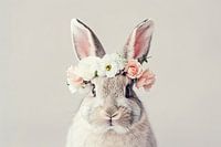 Deze schattige afbeelding toont een schattig konijn met een prachtige bloemenkrans. De zachte pastelkleuren en de gedetailleerde weergave van de bloemen geven de foto een betoverende uitstraling. Deze foto is perfect voor de kinderkamer en brengt een liefdevolle en vrolijke sfeer in de kamer. Het harmonieuze kleurenpalet en het charmante motief maken het een ideaal cadeau voor dierenliefhebbers en iedereen die op zoek is naar een bijzondere en stijlvolle decoratie. Een hoogtepunt in de wereld van elk kind dat vreugde en warmte uitstraalt.