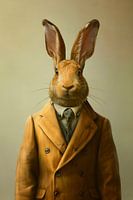 Koop dit schilderij Konijn netjes in Pak van But First Framing als reproductie op canvas, aluminium dibond, (ingelijste) fotoprint, behang en ArtFrame, op maat geprint in Fine-Art kwaliteit.