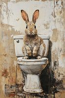 Konijn op Toilet in Rustieke Textuurrijke Stijl van Eva Lee