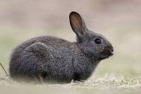 Konijn / Wild konijn ( Oryctolagus cuniculus ), zwart wild konijn, gefotografeerd op ooghoogte, wild, Europa.