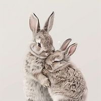 Koop de foto Konijnen knuffelen van Poster Art Shop op canvas, aluminium dibond, (ingelijste) fotoprint, behang en ArtFrame, op maat geprint in Fine-Art kwaliteit.