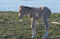 een veulen van een paar dagen oud in de Oostvaardersplassen