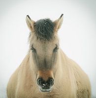 Konikpaarden in de sneeuw in natuurgebied Lentevreugd. Er lopen hier ongeveer 20 van deze paarden. Van de konik wordt vaak gezegd dat hij verwant is aan de tarpan, een uitgestorven wild paard uit Oost-Europa. Evenals vele andere oorspronkelijke paardenrassen is de konik klein (ponymaat) en toont zijn vacht kenmerken van het wildkleurpatroon.