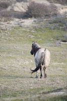 Een van de vier Konikpaarden die in de Kennemerduinen tussen Zandvoort en Haarlem lopen. Een gebied waar ook Wisenten zijn uitgezet.