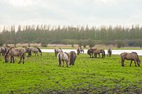 konikpaarden grazend in de oostvaarders plassen te Flevoland