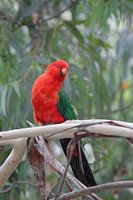 Mannelijke King Parakeet (Alisterus scapularis) zit op een tak bij Kennett River aan de Great Ocean Road, Victoria, Australië.