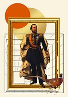 Koning stapt uit zijn lijst; deze koning uit het verleden lijkt geteleporteerd via de matrix in een raster naar deze tijd.