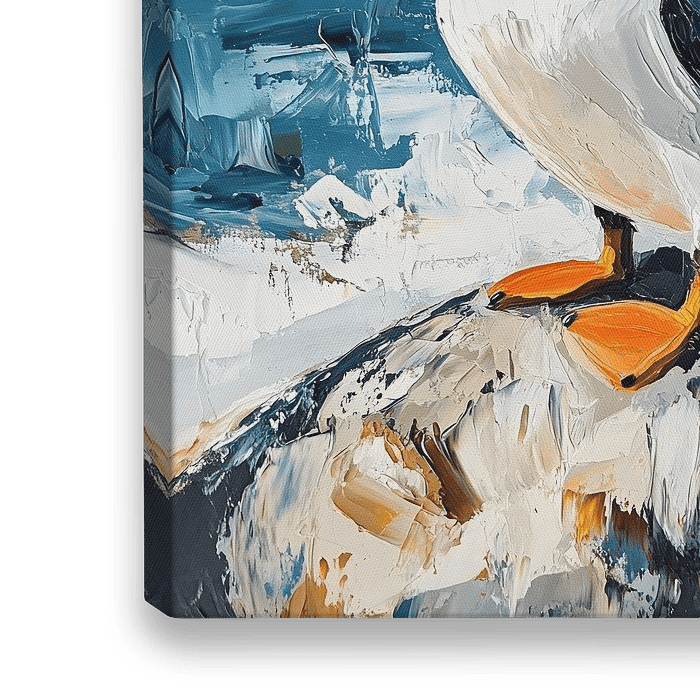 Een trotse papegaaiduiker staat op een rots en kijkt in de verte. Met zijn levendige kleuren en dynamische penseelstreken brengt dit kunstwerk de wilde schoonheid van de kustlandschappen tot leven. De mix van zachte blauwe en witte tinten straalt rust en ruimte uit, terwijl het…