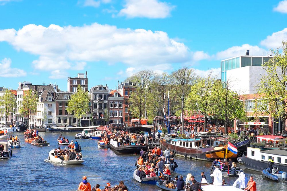 Koningsdag in Amsterdam op de Amstel in Nederland