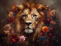 Dit fine art beeld vangt de majesteit van de leeuw in een betoverende combinatie van bloemen en zachte gouden tinten. De koninklijke sereniteit straalt uit in dit kunstwerk, dat perfect past in een luxe, klassiek of eigentijds interieur. De zachte kleuren van goud en bruin voegen een vleugje warmte en elegantie toe aan elke ruimte, terwijl de natuurlijke grootsheid van de leeuw een gevoel van kracht en pracht oproept.