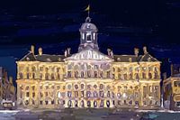 Unieke digitale schilderij van het Koninklijk Paleis Amsterdam, ideaal als wanddecoratie. Gemaakt van een echte foto, perfect voor een indrukwekkend kunstwerk aan de muur.