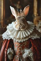 Dompel jezelf onder in de prachtige wereld van de barok met dit betoverende portret van een koninklijk konijn. Met een fijn bewerkte kroon en weelderig gewaad belichaamt dit kunstwerk een unieke mix van elegantie en humor. De gedetailleerde weergave van de vacht en de fijne stoffen maken dit schilderij tot een uitzonderlijke blikvanger, ideaal voor liefhebbers van dierenportretten en sierlijke ensceneringen. Een charmant stuk dat elke kamer een vorstelijk tintje zal geven.