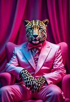 Surrealistische dierenportretten door Fresh Fine Art - Dit potret toont een echt vorstelijk luipaard in rood, roze en magenta en andere subtiele en warme kleuren.