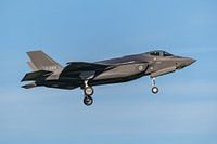 Lockheed Martin F-35 Lightning II van de Koninklijke Luchtmacht gaat landen na afloop van een trainingsvlucht.