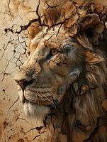 Deze fascinerende afbeelding vangt de essentie van een leeuw, prachtig verweven met een achtergrond van gebarsten aarde. De textuur van de barsten loopt synchroon met de vacht van de leeuw, alsof natuur en tijd samensmelten. De kleuren variëren van zandgeel en oker tot diepe aardetinten, die een tijdloze en rustieke sfeer creëren. Dit kunstwerk zou perfect passen in een interieur dat natuurlijke materialen en warme tinten benadrukt, zoals een landelijke stijl of een met een Afrikaanse invloed. Het kan ook een subtiele, doch krachtige aanvulling zijn op een minimalistisch decor, waar het als een statement piece kan dienen.