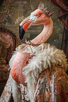 Dit prachtige kunstwerk toont de majestueuze flamingo in prachtige barokke kleding, gekroond met een weelderige tiara. De fijne details van de veren en de sierlijke gewaden geven het beeld een elegante en toch humoristische toets. Ideaal voor kunstliefhebbers die op zoek zijn naar ongewone en unieke stukken om een vleugje koninklijke…