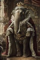 Deze majestueuze afbeelding van een olifant in koninklijke kleding combineert humoristische creativiteit met artistieke elegantie. De olifant draagt een prachtige kroon en barokke gewaden, rijkelijk versierd met kostbare details en uitgebreide versieringen. Ideaal voor kunstliefhebbers en verzamelaars die houden van ongewone en grillige werken. Dit schilderij brengt koninklijke pracht en een vleugje humor in elk huis of kantoor.