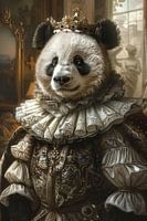 Dit indrukwekkende kunstwerk toont een majestueuze panda in weelderige barokke kleding, gekroond en vol koninklijke pracht en praal. De liefdevolle details van het rijkelijk versierde gewaad en de elegante pose van de panda creëren een perfecte symbiose van humor en elegantie. Een unieke blikvanger die zowel creativiteit als koninklijke gratie uitstraalt. Ideaal voor kunstliefhebbers en verzamelaars die een buitengewoon tintje aan hun kamer willen geven.