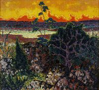Konrad Mägi (1878-1925) was een Estlandse schilder die bekend staat om zijn intens gekleurde landschappen en zijn rol als een van de belangrijkste vertegenwoordigers van de vroegmoderne Estlandse kunst. Zijn werk wordt gekenmerkt door heldere kleuren en dynamische, vaak expressieve penseelstreken die beïnvloed zijn door het impressionisme en post-impressionisme. Mägi vond inspiratie in de natuur, vooral in de landschappen van zijn geboorteland Estland, maar ook in Noorwegen en Italië, waar hij ook schilderde. Zijn schilderijen zijn emotioneel verbonden met de natuur en hebben vaak een diepe spirituele dimensie.