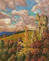 Konrad Mägi (1878-1925) was een Estlandse schilder die bekend staat om zijn intens gekleurde landschappen en zijn rol als een van de belangrijkste vertegenwoordigers van de vroegmoderne Estlandse kunst. Zijn werk wordt gekenmerkt door heldere kleuren en dynamische, vaak expressieve penseelstreken die beïnvloed zijn door het impressionisme en post-impressionisme. Mägi vond inspiratie in de natuur, vooral in de landschappen van zijn geboorteland Estland, maar ook in Noorwegen en Italië, waar hij ook schilderde. Zijn schilderijen zijn emotioneel verbonden met de natuur en hebben vaak een diepe spirituele dimensie.