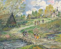 Konstantin Aleksejevitsj Korovin (1861-1939) was een Russische impressionistische schilder en een van de belangrijkste decorontwerpers van zijn tijd. Hij studeerde aan de School voor Schilderkunst, Beeldhouwkunst en Architectuur in Moskou en werd bekend om zijn kleurrijke, lichtrijke landschappen, portretten en scènes uit het alledaagse Russische leven. Korovin werkte ook nauw samen met het Moskouse Kunsttheater en verschillende operahuizen, waar hij innovatieve toneeldecors creëerde. In de jaren 1920 emigreerde hij naar Parijs, waar hij woonde en bleef schilderen tot aan zijn dood. Zijn werken combineren westerse impressionistische invloeden met Russische sfeer en sensualiteit.
