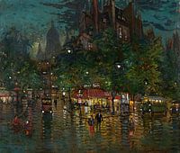 Konstantin Aleksejevitsj Korovin (1861-1939) was een Russische impressionistische schilder en een van de belangrijkste decorontwerpers van zijn tijd. Hij studeerde aan de School voor Schilderkunst, Beeldhouwkunst en Architectuur in Moskou en werd bekend om zijn kleurrijke, lichtrijke landschappen, portretten en scènes uit het alledaagse Russische leven. Korovin werkte ook nauw samen met het Moskouse Kunsttheater en verschillende operahuizen, waar hij innovatieve toneeldecors creëerde. In de jaren 1920 emigreerde hij naar Parijs, waar hij woonde en bleef schilderen tot aan zijn dood. Zijn werken combineren westerse impressionistische invloeden met Russische sfeer en sensualiteit.