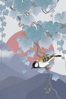 Koop de illustratie Koolmees op paulownia tak van Marja van den Hurk op canvas, aluminium dibond, (ingelijste) fotoprint, behang en ArtFrame, op maat geprint in Fine-Art kwaliteit.