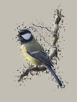 De natuur aan de wand. Een koolmees op z'n gemak op een tak. met verschillende digitale technieken gemaakt.