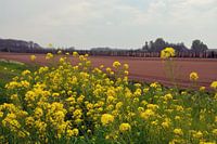 Een Nederlands plaatje. Op de voorgrond de bijen en hommels die vliegen tussen de gele bloemen van het koolzaad. Daar achter een akker klaar om bebouwd te worden (of net ingezaaid). Daar weer achter een rij met kort gewiekte bomen die de akker daarachter en de boerderij beschutting geven. In de lucht weinig blauw te bekennen. De wolken zijn meer licht grijs. De foto is gemaakt in de omgeving van Dordrecht.