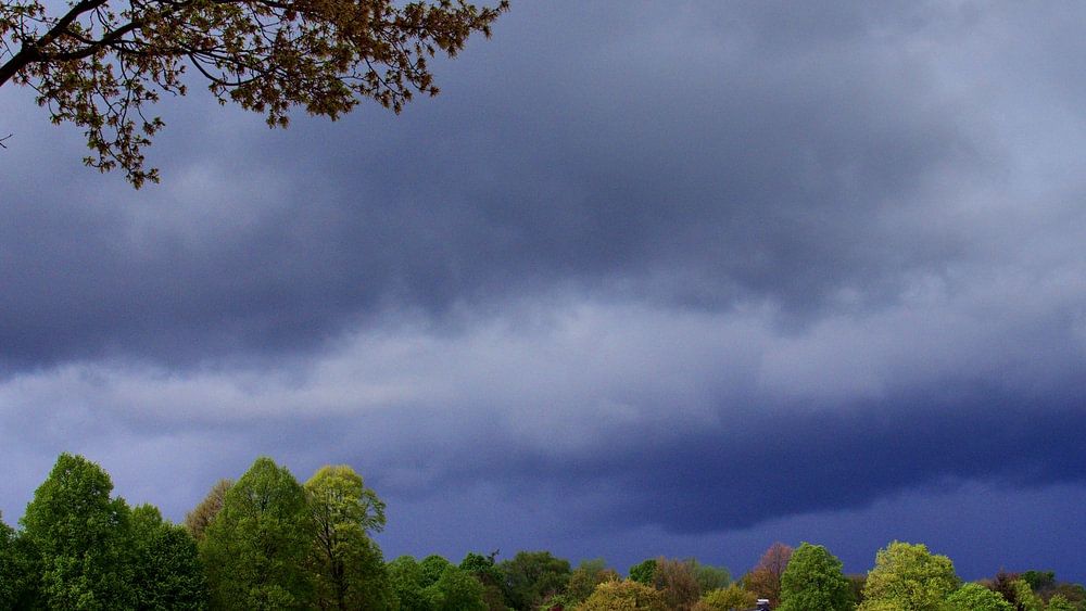 Donderwolken boven een koolzaadveld in Gelsenkirchen-Erle