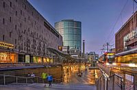 De Beurstraverse in Rotterdam, beter bekend als de Koopgoot, op een tijdstip dat er niet zoveel meer te kopen valt. Trams passeren elkaar naast de verdiepte winkelstraat die in de jaren negentig werd aangelegd en twee zijden van de Coolsingel met elkaar verbindt. Links zien we het gebouw van de Bijenkorf, op de achtergrond het Beurs WTC.