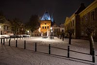 Een schilderachtige foto van de Koornmarktspoort te Kampen. Gemaakt tijdens een sneeuwbui.