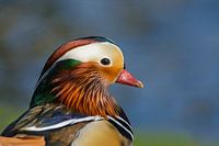 Close up portret van de prachtig gekleurde Mandarijneend. Als je het mij vraagt de mooiste eend van het land!