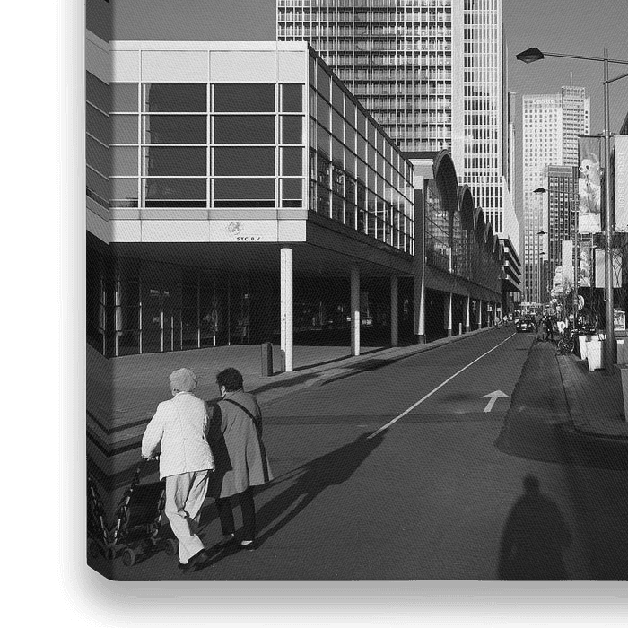 Wilhelminakade op de Kop van Zuid in Rotterdam. Op de achtergrond het gebouw De Rotterdam. Architectuurfotografie in zwart wit.
