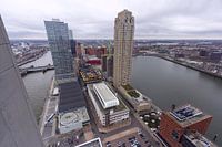Heerlijk uitzicht over de Kop van Zuid Rotterdam gezien vanaf het balkon van het Wolrd Port Center.