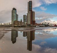 De Kop van Zuid In Rotterdam reflecteert in een plas.
