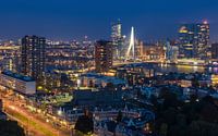 De kop van zuid na zonsondergang gezien vanaf het dak van het Erasmus MC.