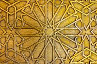 De toegangspoorten tot het Koninklijk Paleis in Fes zijn voorzien van koperwerk in prachtige, ambachtelijk gemaakte, patronen. Symmetrie.
