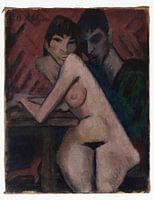 Ook hier staat naakt en bloot centraal in dit naaktportret, waarbij de echtgenote van de artiest ontbloot bij haar man op schoot zit in een interieur.