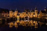 Koppelpoort in Amersfoort (Nederland) tijdens het blauwe uur. De Koppelpoort is een combinatie van landpoort en waterpoort. Gebouwd in de middeleeuwen.
