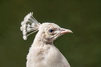 Kopportret van een witte pauw (Pavo cristatus mut. alba) met kroon
