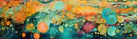 Koraal | Abstract Koraal - Dit levendige, abstracte schilderij speelt met een spectrum van aqua- en oranjetinten, geflankeerd door vegen groen en subtiele hints van roze, wat een onderwater tafereel of een bloeiend koraalrifscape suggereert. De organische vormen en de manier waarop de kleuren op sommige plekken lijken te dansen en in elkaar overgaan, geven een gevoel van beweging en natuurlijke harmonie. De gelaagdheid en textuur voegen diepte en interesse toe en zouden een frisse toets aan diverse interieurstijlen kunnen geven.