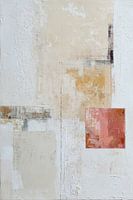 Koraalhoek is een minimalistisch, abstract kunstwerk met zachte, neutrale tinten zoals crème, beige en lichtgrijs. De compositie is sober en rustig, waardoor alle aandacht vanzelf naar het warme koraalroze vlak in de rechterbenedenhoek gaat. De dunne lijnen die subtiel over het doek lopen, geven een fijne textuur zonder de eenvoud te…