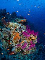 Dit prachtige kleurrijke tafereel is een typisch beeld uit de Rode Zee. Zachte en harde koralen zorgen voor een grote kleurenpracht.