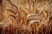 Close-up van een Limburgse akker met goud-geel koren net voor het oogsten.
