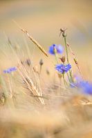 Romantische korenbloem in een zomers goudkleurig korenveld