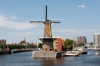 Rotterdam The Netherlands Wind Korenmolen de Distilleerketel windmill, malt mill, on the historical Delfshaven.