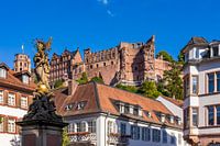 Mariazuil op de Kornmarkt in de oude binnenstad en kasteel Heidelberg in Heidelberg, Baden-Württemberg, Duitsland.