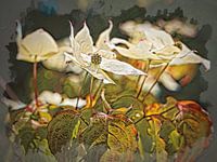 Digitale bewerking van een close-up van de bloemen van de Kornoelje.