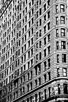 Zwart-wit hoogcontrasterend korrelig gebouw vol structuur.